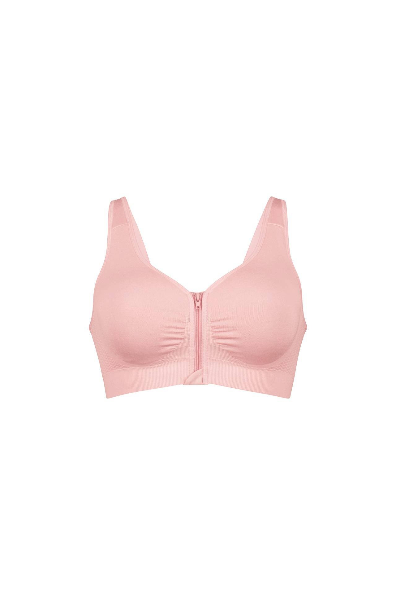 Sportieve look, eenvoudig comfort: de naadloze prothesebustier kunt u vooraan met een doorlopende ritssluiting openen. Hij is dus zowel modieus als handig. Voor een natuurlijk silhouet zorgen de uitneembare cups in de dubbellaagse beha, die zowel flatterend zijn als steun geven. Aangenaam brede, zachte schouderbandjes vervolledigen het second-skin-comfort.