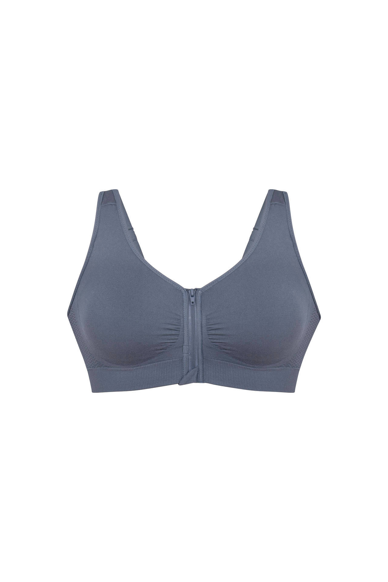 Sportieve look, eenvoudig comfort: de naadloze prothesebustier kunt u vooraan met een doorlopende ritssluiting openen. Hij is dus zowel modieus als handig. Voor een natuurlijk silhouet zorgen de uitneembare cups in de dubbellaagse beha, die zowel flatterend zijn als steun geven. Aangenaam brede, zachte schouderbandjes vervolledigen het second-skin-comfort.