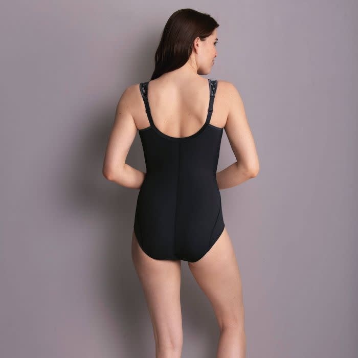 Modern, ontspannen en met veel vrouwelijke charme: Een filigrane, grafische bloemenprint zet de elegante feelgood serie op een nieuwe manier in scène. Modieus met een tikje coolness in antraciet of fris en tijdloos in crystal. Voor een lichte, luchtige Clara look zorgen de semitransparante stroken aan het decolleté die een opwindend contrast vormen en het decolleté optisch dieper maken.