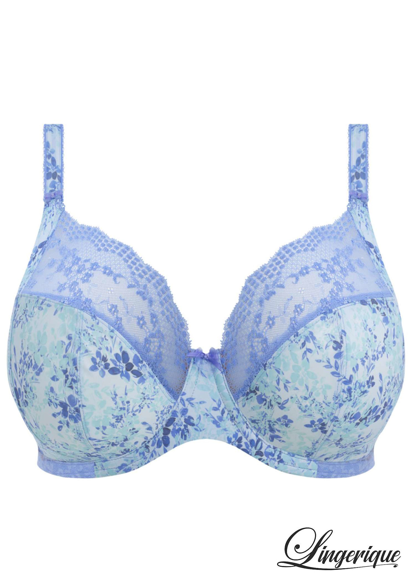 Elomi's Lucie Stretch Plunge Bra ... nu in een o zo mooie korenbloemtint! De lage voorkant geeft je de perfecte plunge vorm zonder push-up, en de bovenkant van de cups zijn gemaakt van mooi stretchkant voor een ronde en moeiteloos comfortabele pasvorm. De zee van blauwe en aqua bloemenprints op de voorkant van de bh contrasteren perfect met het stretch kanten ontwerp met dierenprint op de achterkant en zorgen voor een leuke eigentijdse afwerking.