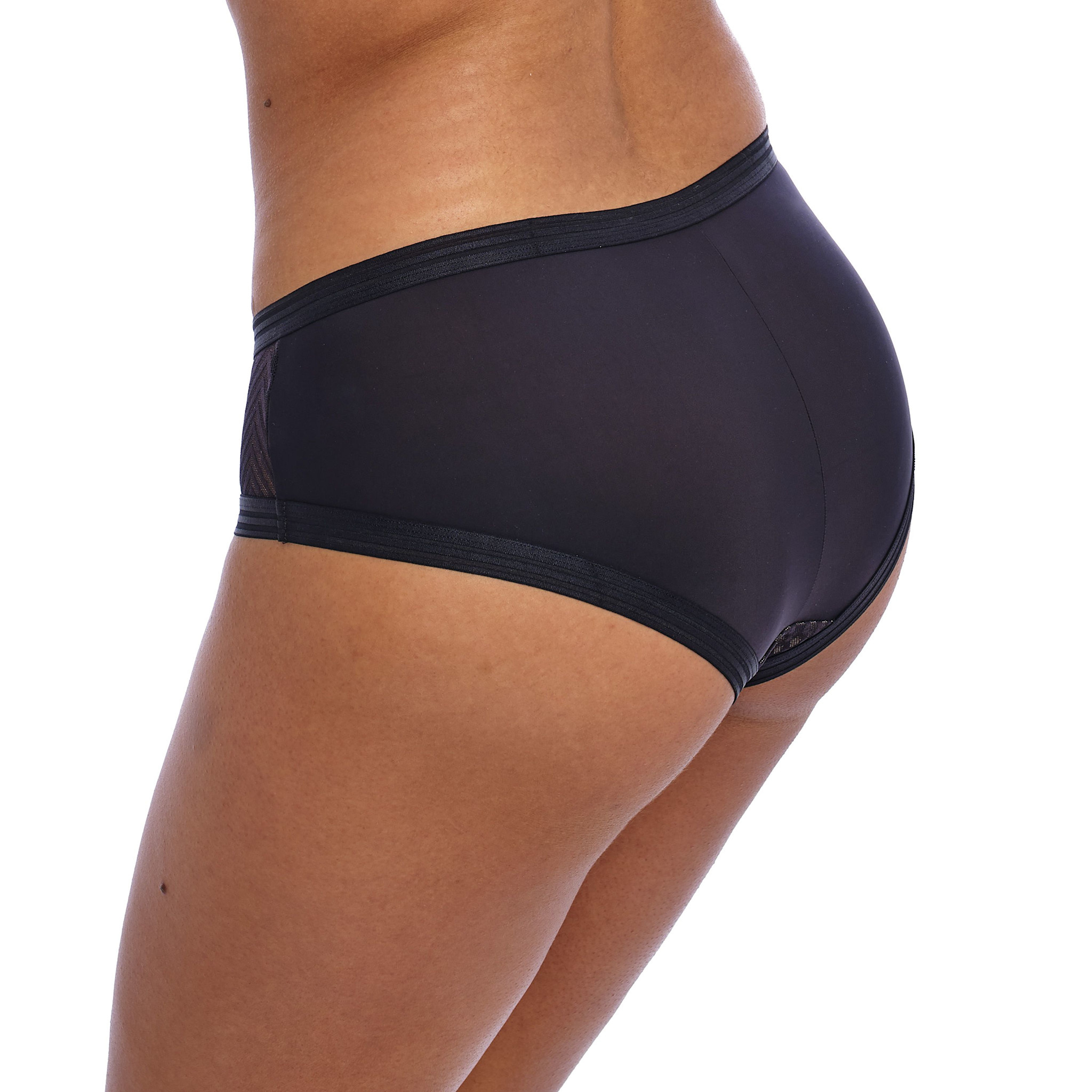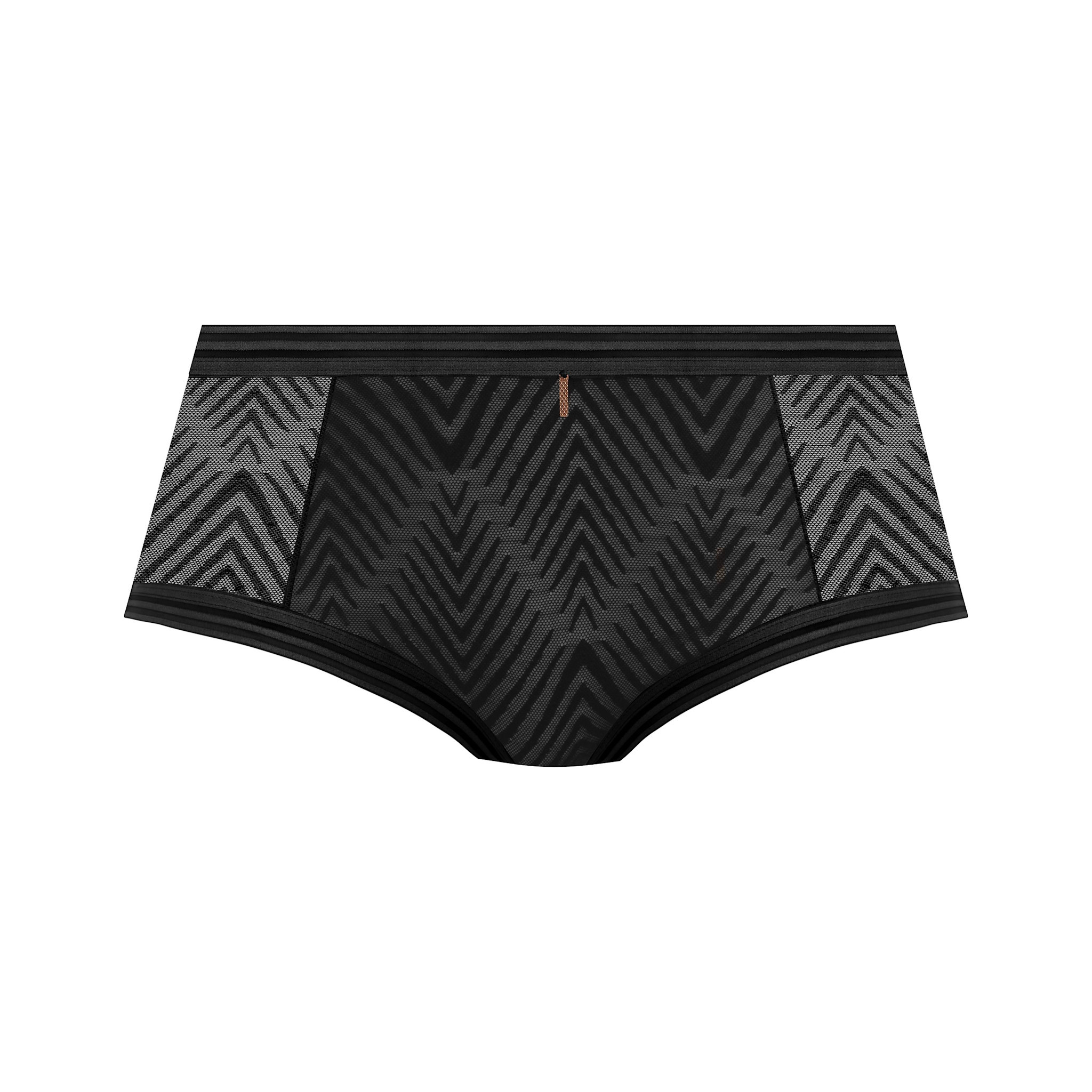 Een geometrische overlay van mesh / kant steelt de show in Freya's Tailored Short, een stretch geo-lace ontwerp met lichte voering aan de voorkant en met platte schaduwstrepen in de taille en pijpen. Afgewerkt met een roségouden bies middenvoor, verkrijgbaar in de maten XS - XL.