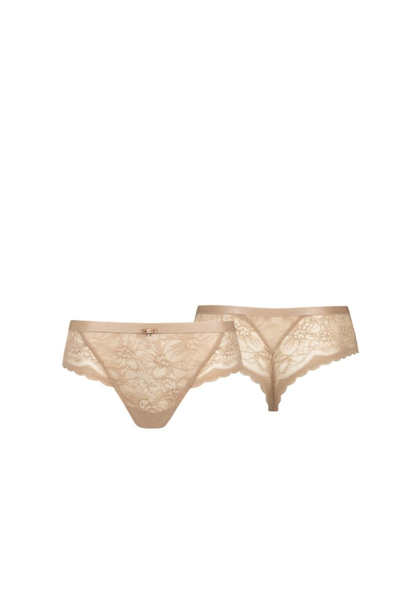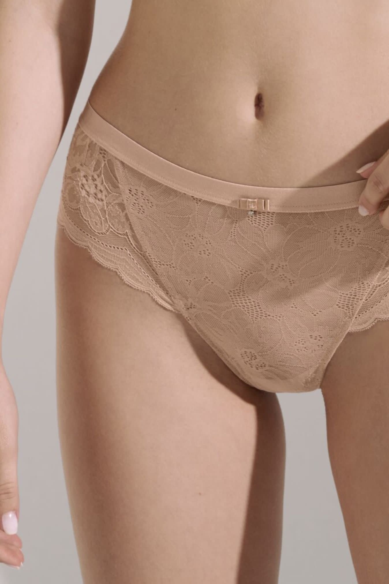 Deze kanten brazilian slip heeft een aantrekkelijke snit en is gemaakt van verleidelijk kant aan de voor- en achterkant. Deze comfortabele slip is een uitstekende keuze onder strakke rokken en broeken omdat hij niet aftekent. Verleidelijk lingerie voor elke dag.