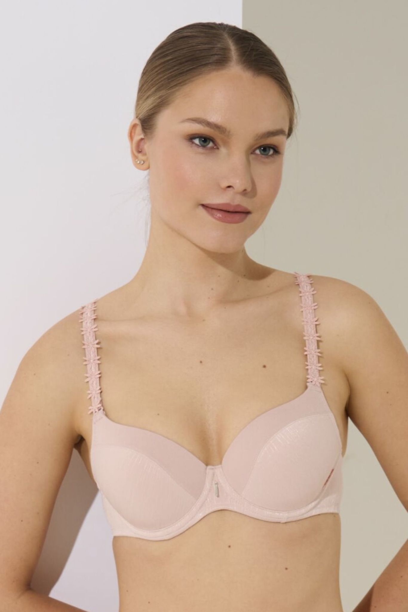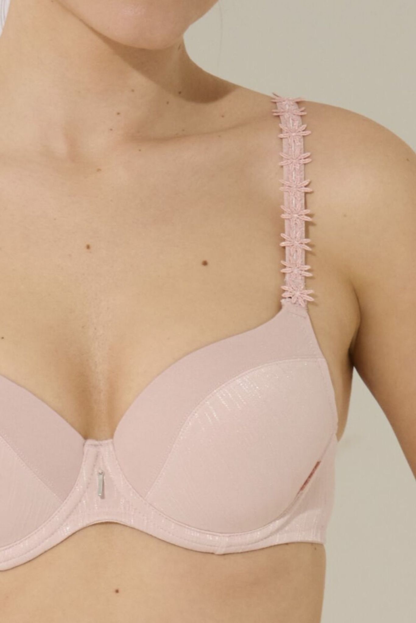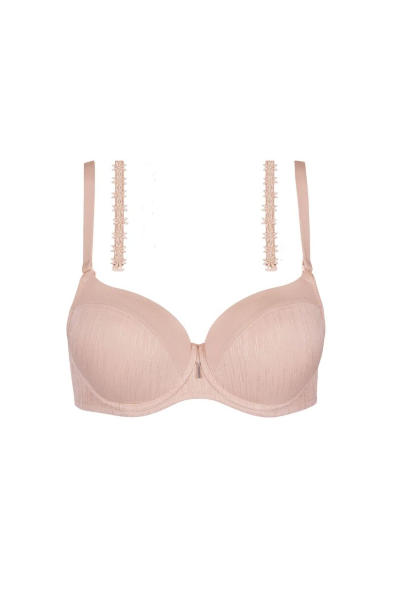 - Beha met zachte cups gemaakt van een combinatie van jacquard en inzetstukken van glad materiaal