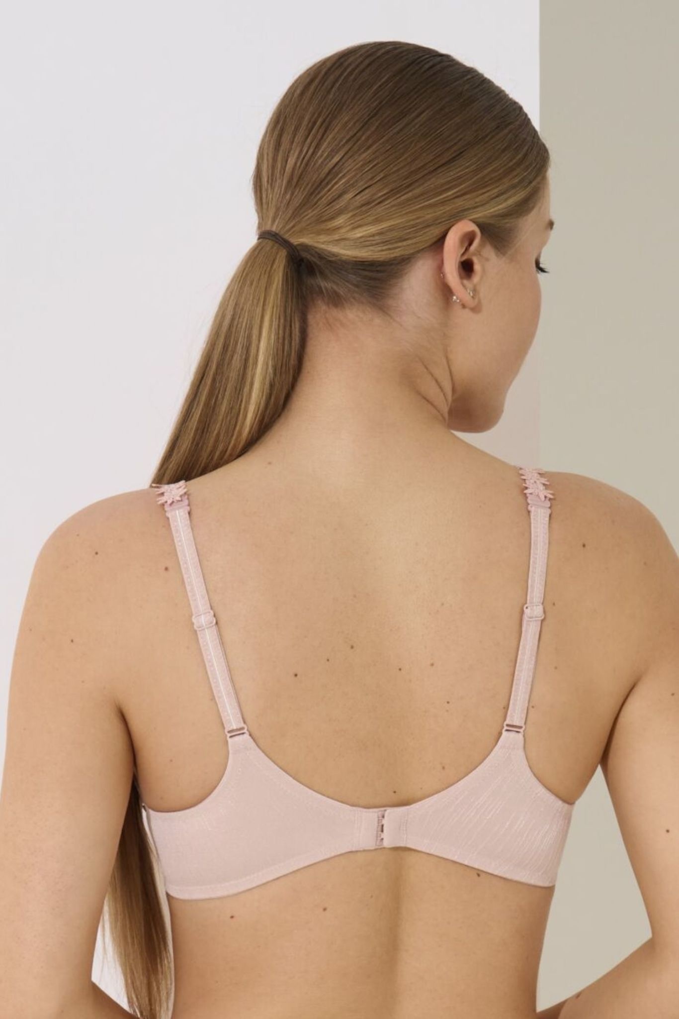 - De rug heeft een bredere snit en is ook gevoerd met elastische tule voor maximaal comfort