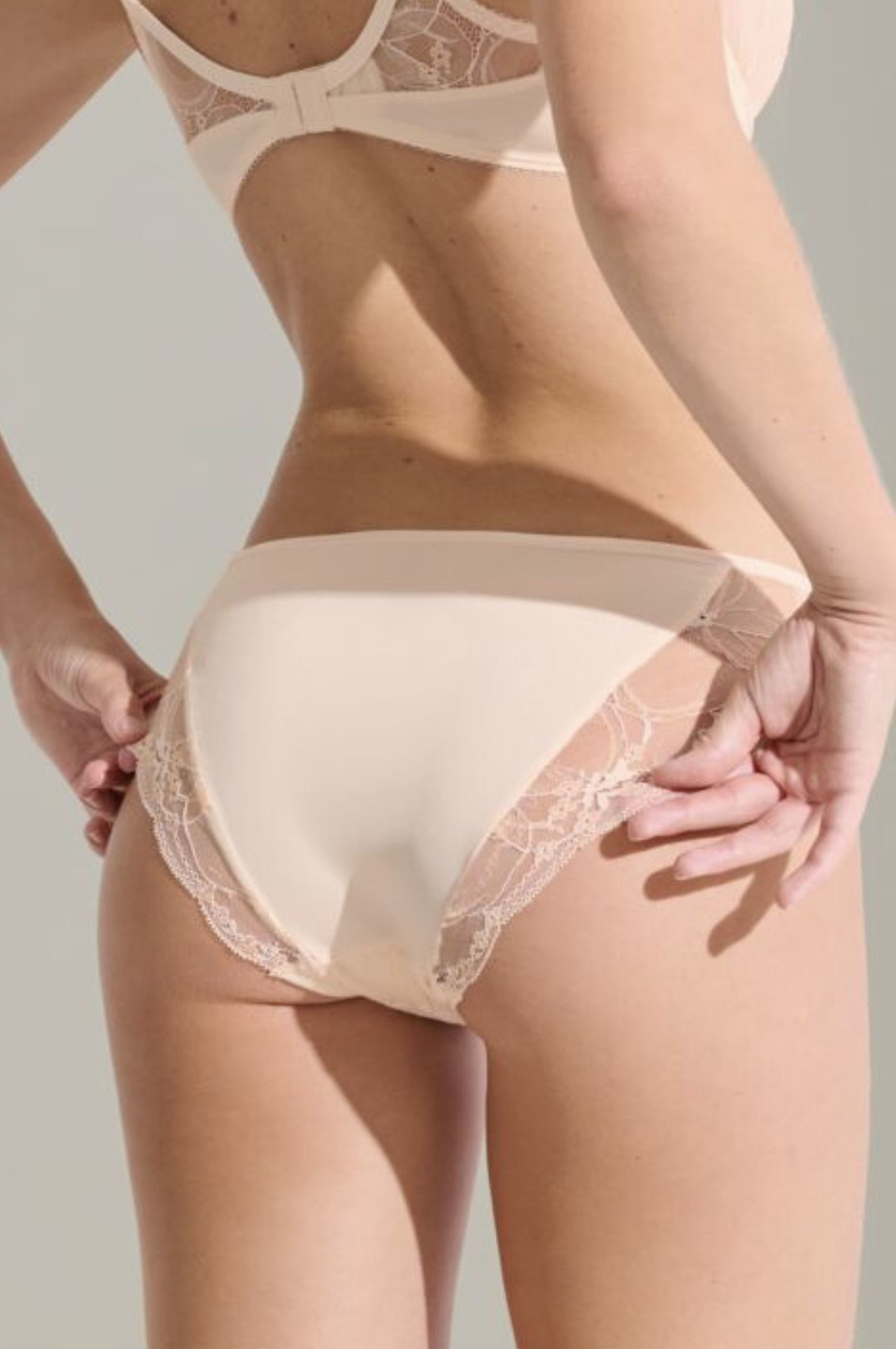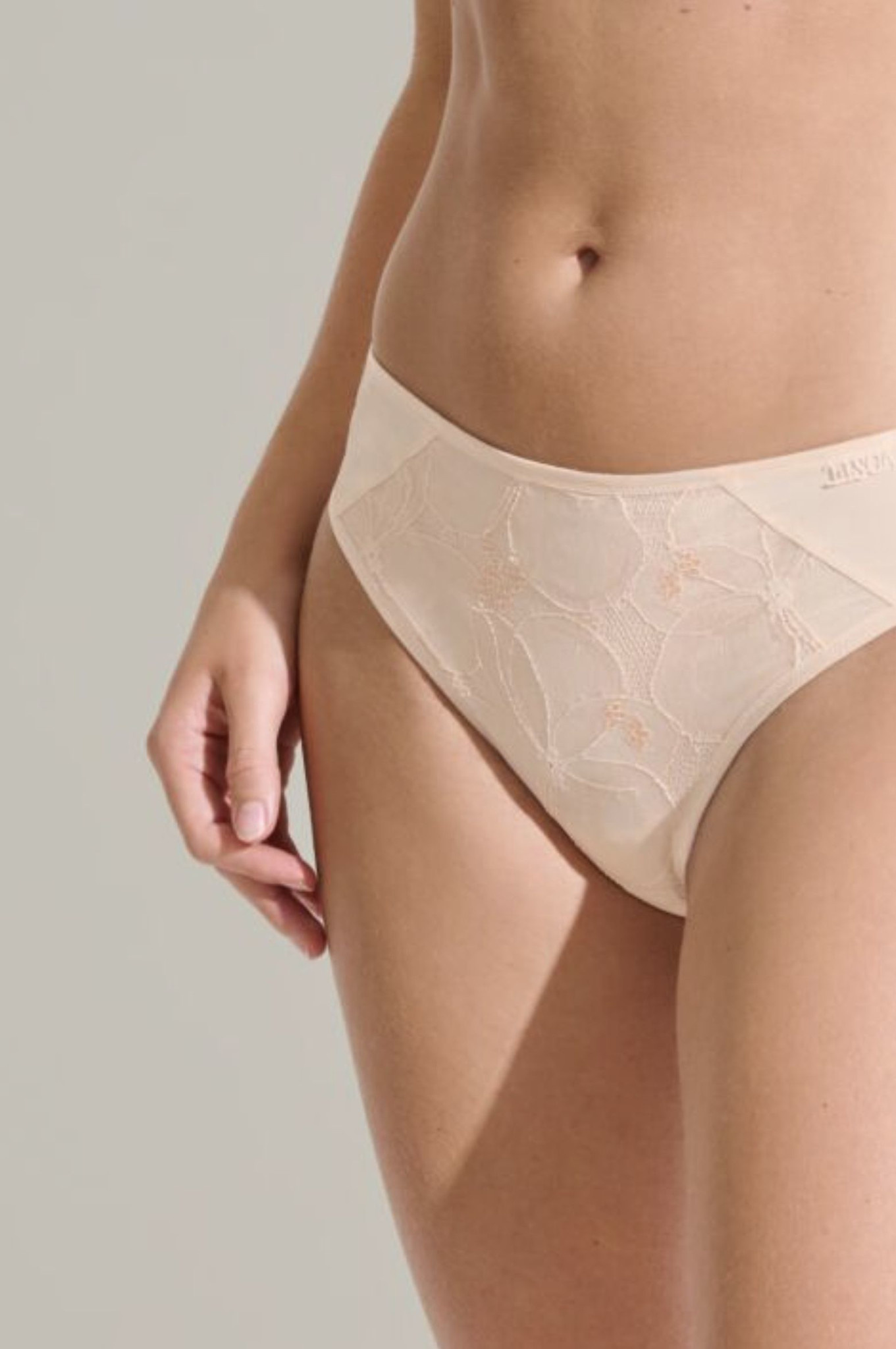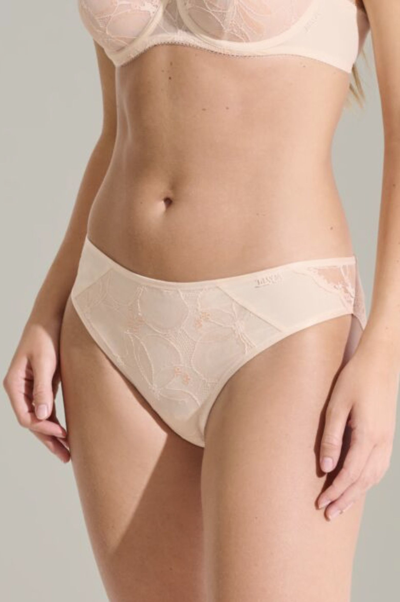 - Licht glanzend materiaal met gebloemde kanten inzetstukken