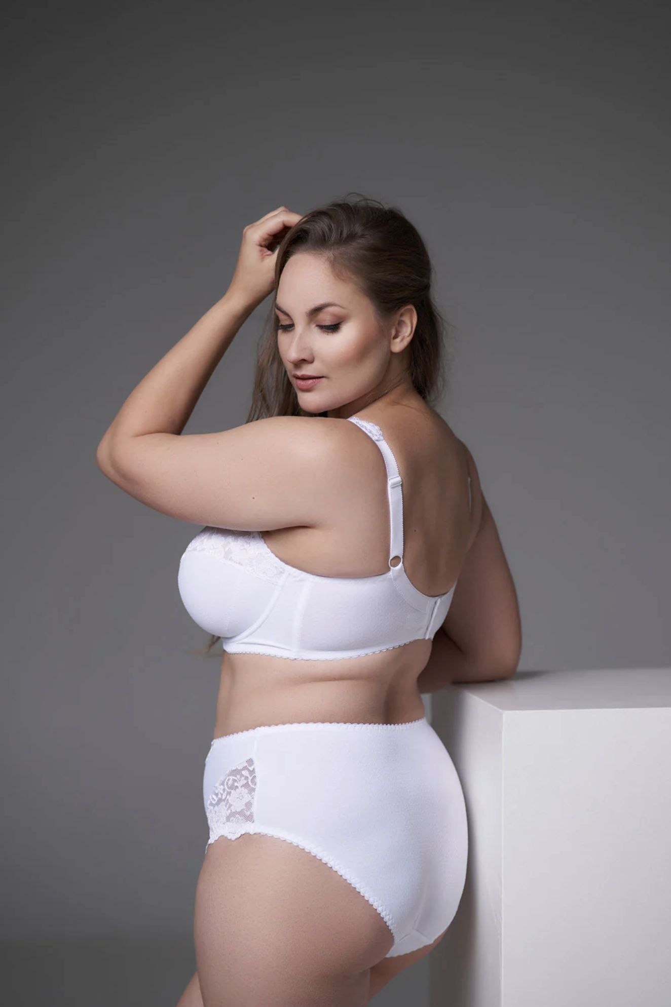 De Beate beugel BH heeft cups die met kant zijn bewerkt. De rest van de cup is gemaakt in stretch micro kwaliteit. Het onderste gedeelte van de cup is met mesh gevoerd voor extra stevigheid. De schouderbanden  hebben een lichte padding voor meer draagcomfort. De band op de rug is extra breed en sluit met 3 haakjes en 3 oogjes. De stof heeft een prachtig jacquard patroon ingeweven in de stof. Dit geeft een luxe uitstraling aan de BH.
