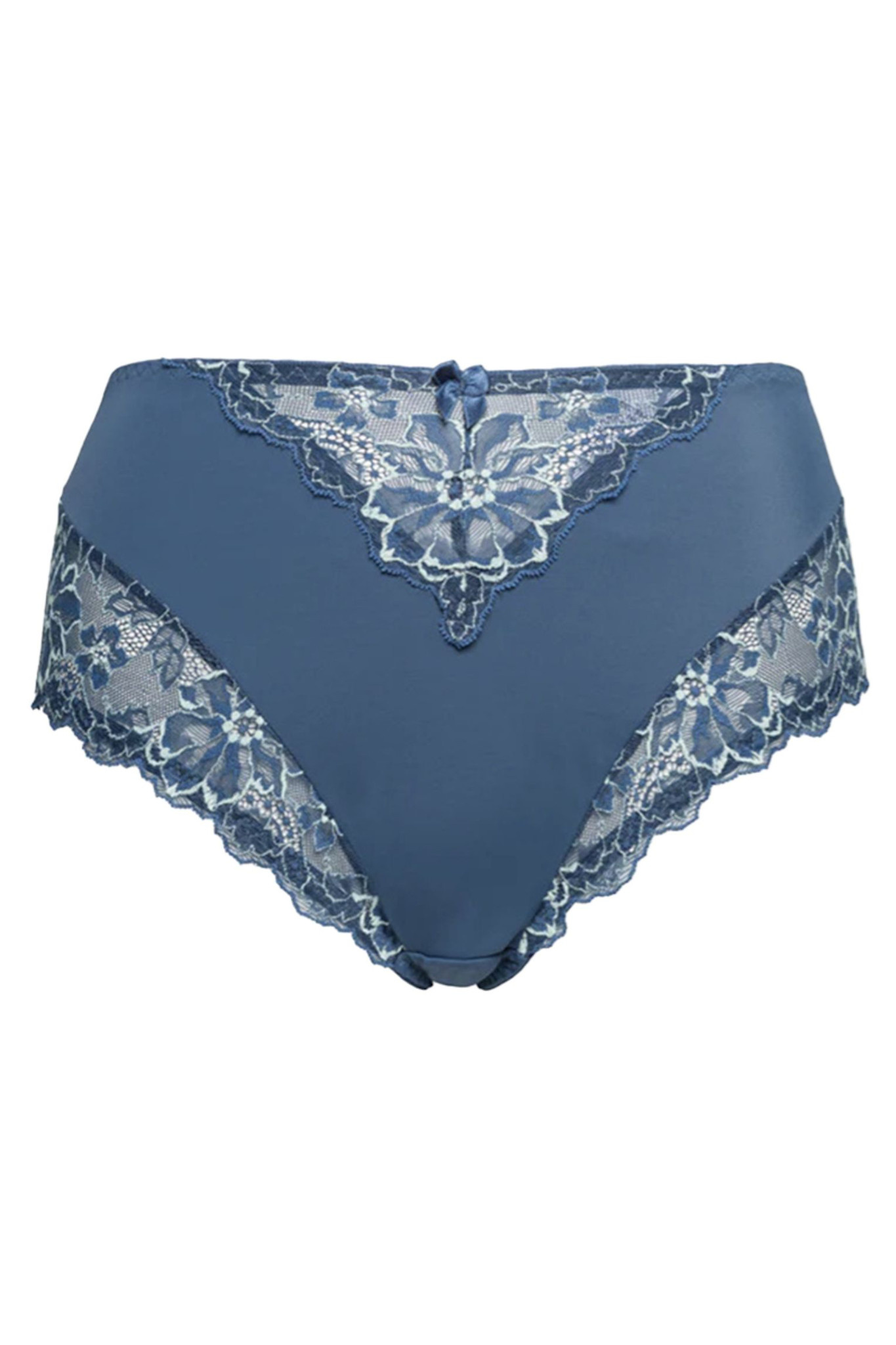 De Midi slip is gemaakt van een zachte micro kwaliteit en valt hoog. Deze slip heeft kanten details langs de beenopeningen en middenvoor onder de tailleband. De tailleband en beenopeningen zijn voorzien van elastiek aan de binnenkant. Middenvoor zit een strikje. Het kruis is met katoen gevoerd.