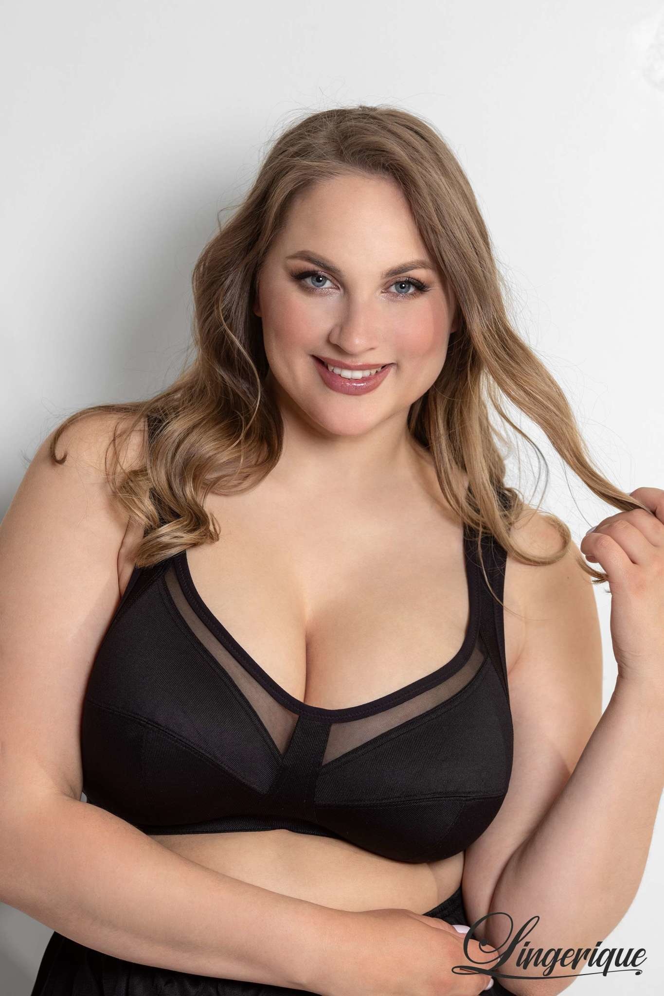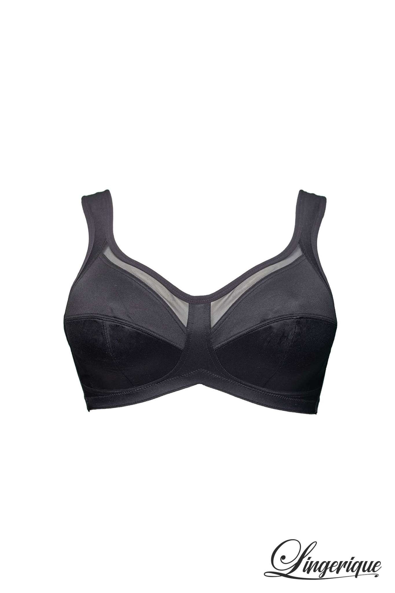 BH zonder beugel Ellie in de keur zwart is gemaakt in een sportieve uitvoering. De schouderbandjes zijn gepolsterd en gevoerd met katoen. Aan de bovenkant van de cup is een doorschijnende mesh kwaliteit aangebracht. De bh heeft 3 haakjes en oogjes en is op 3 standen te verstellen. De schouderbandjes zijn ook in hoogte verstelbaar. De kwaliteit is erg zacht.