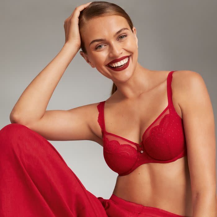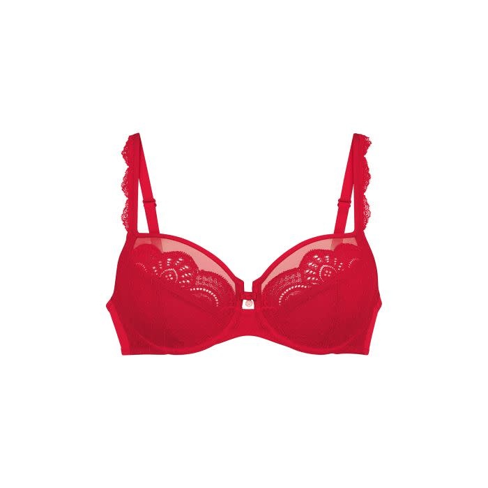 Licht en sierlijk. Dat is de beugelbeha Selma, die schittert met fijn kant in de cups en op de bandjes. Een andere blikvanger is de delicate siersteen tussen de cups, die het decollete doet glinsteren. Naast het moderne ontwerp overtuigt het ook met de hoogwaardige afwerking, functie en nauwkeurige pasvorm. Bijpassend is er de tailleslip en een sexy shorty.