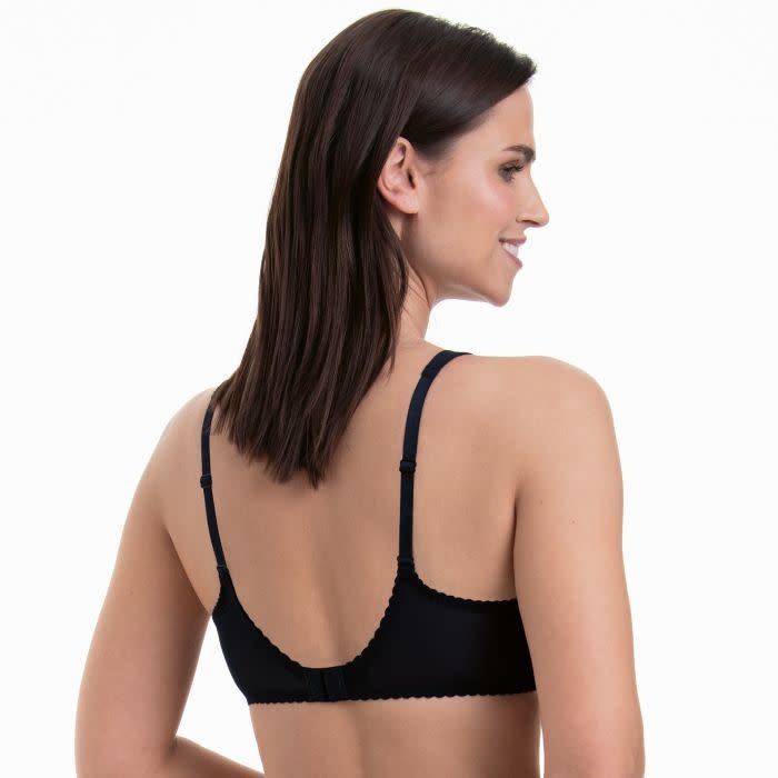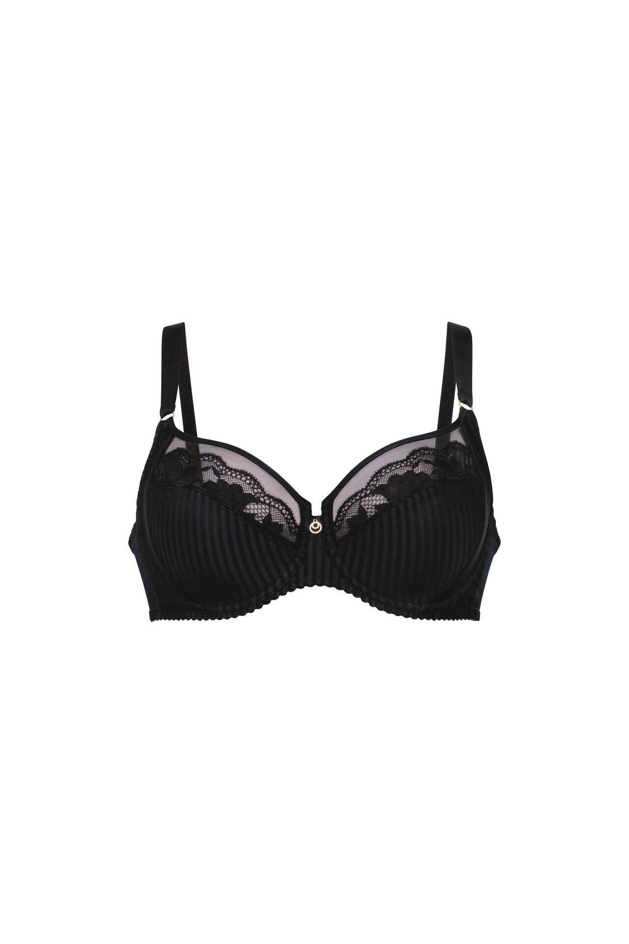 De beugelbeha Sita combineert stijlvolle strepen en gebloemd kant voor een vrouwelijke, stijlvolle en chique look. Glanzende all-over strepen in de ondercup worden gecombineerd met elastisch gebloemd kant in de bovencup, gevoerd met transparante tule. De diepzittende brug en goudkleurige sierringen bij de brug en aanzet van de schouderbandjes zorgen voor een luchtige en stijlvolle look. De driedelige cups en de doorlopende beugel bieden een perfecte pasvorm en comfortabele ondersteuning.