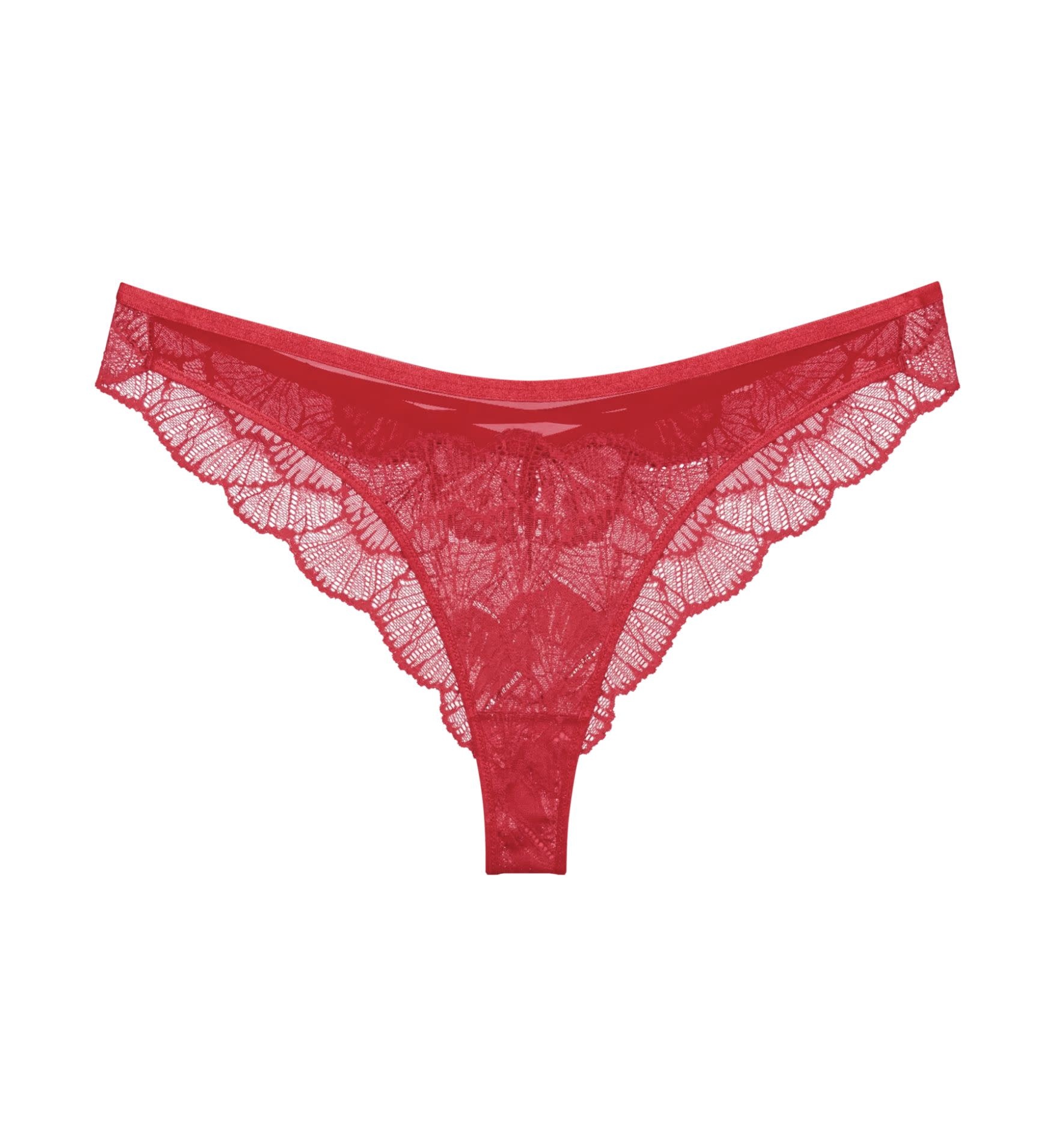Een verleidelijke snit in delicaat kant. Deze V-vormige Brazilian flatteert je rondingen.